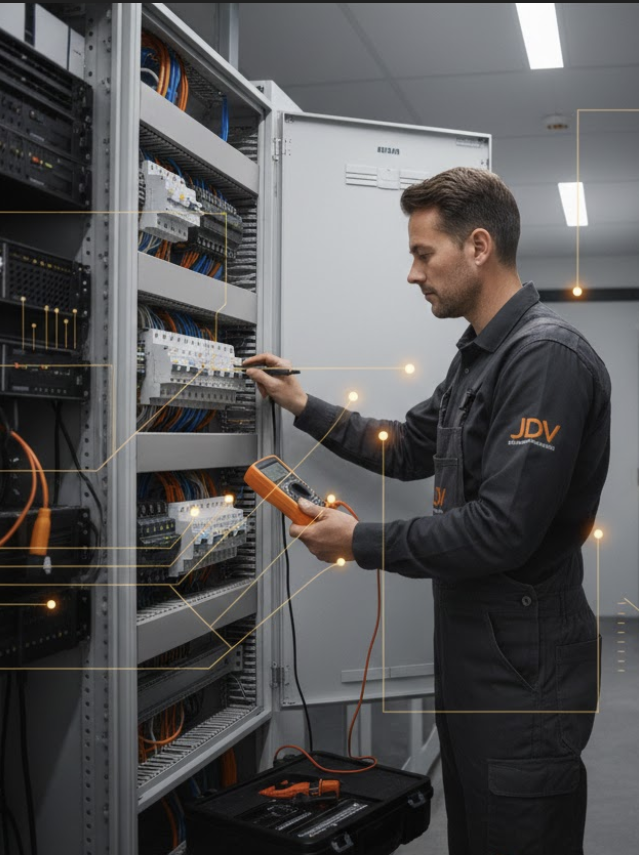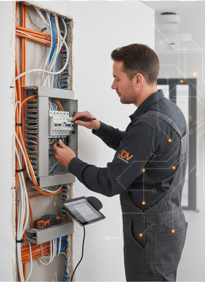 Of het nu gaat om een kleine aanpassing of een compleet nieuwe elektrische installatie, bij JDV Elektrotechniek helpen wij u graag bij het realiseren van uw wensen. Wij leveren veilige, efficiënte en toekomstbestendige installaties die voldoen aan alle geldende normen.