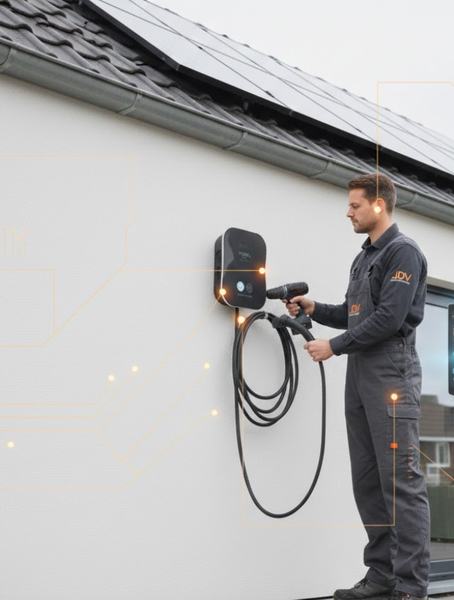 JDV Elektrotechniek helpt u bij het verduurzamen van uw elektrische installatie zonder in te leveren op betrouwbaarheid of comfort. Van energiezuinige aanpassingen tot laadoplossingen voor elektrische voertuigen, wij realiseren systemen die energie besparen en klaar zijn voor morgen.